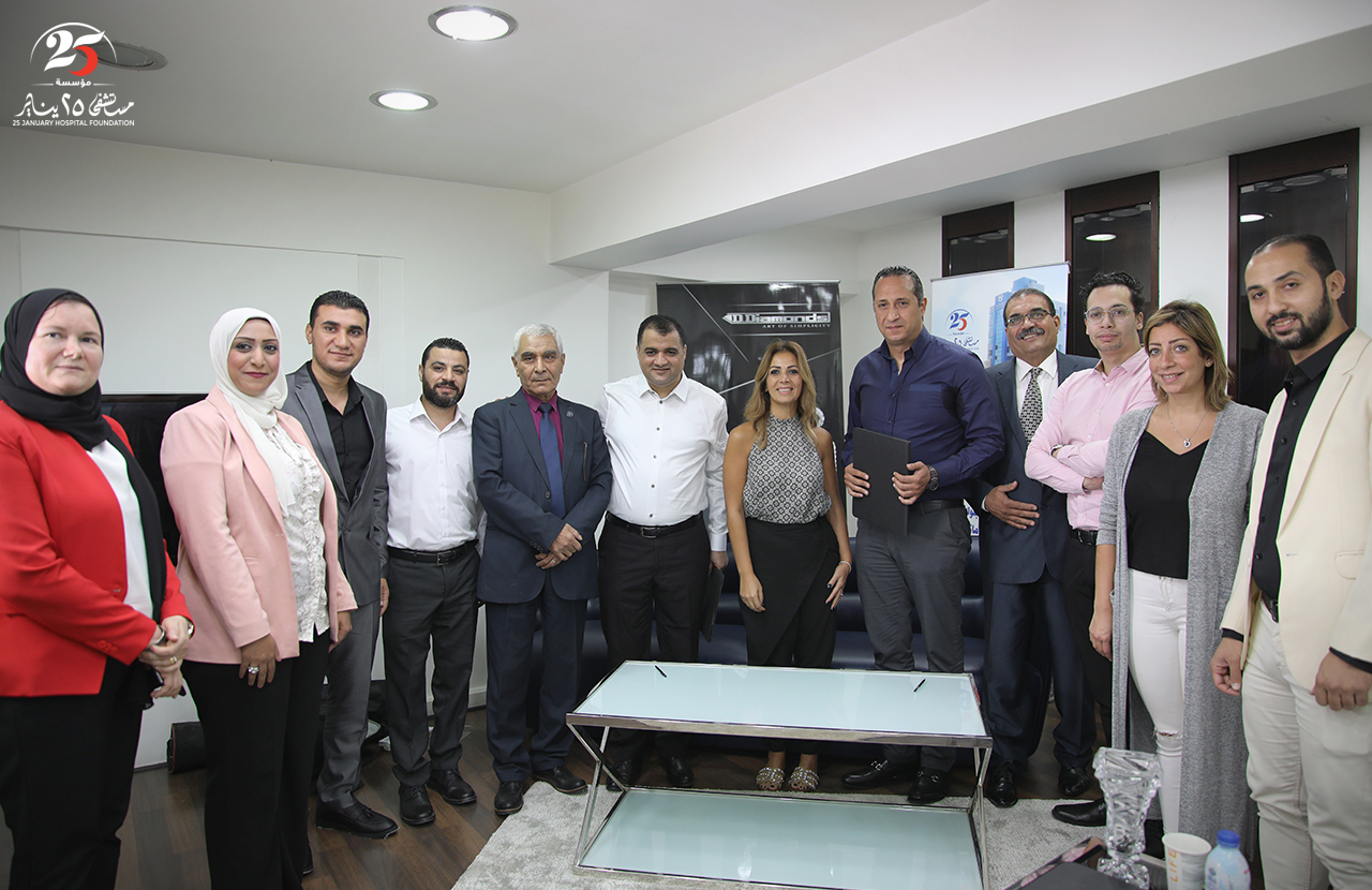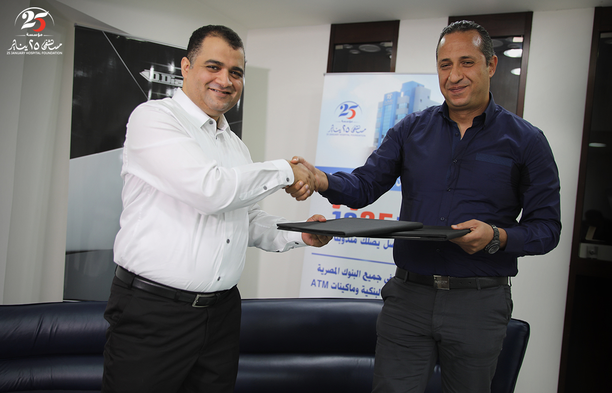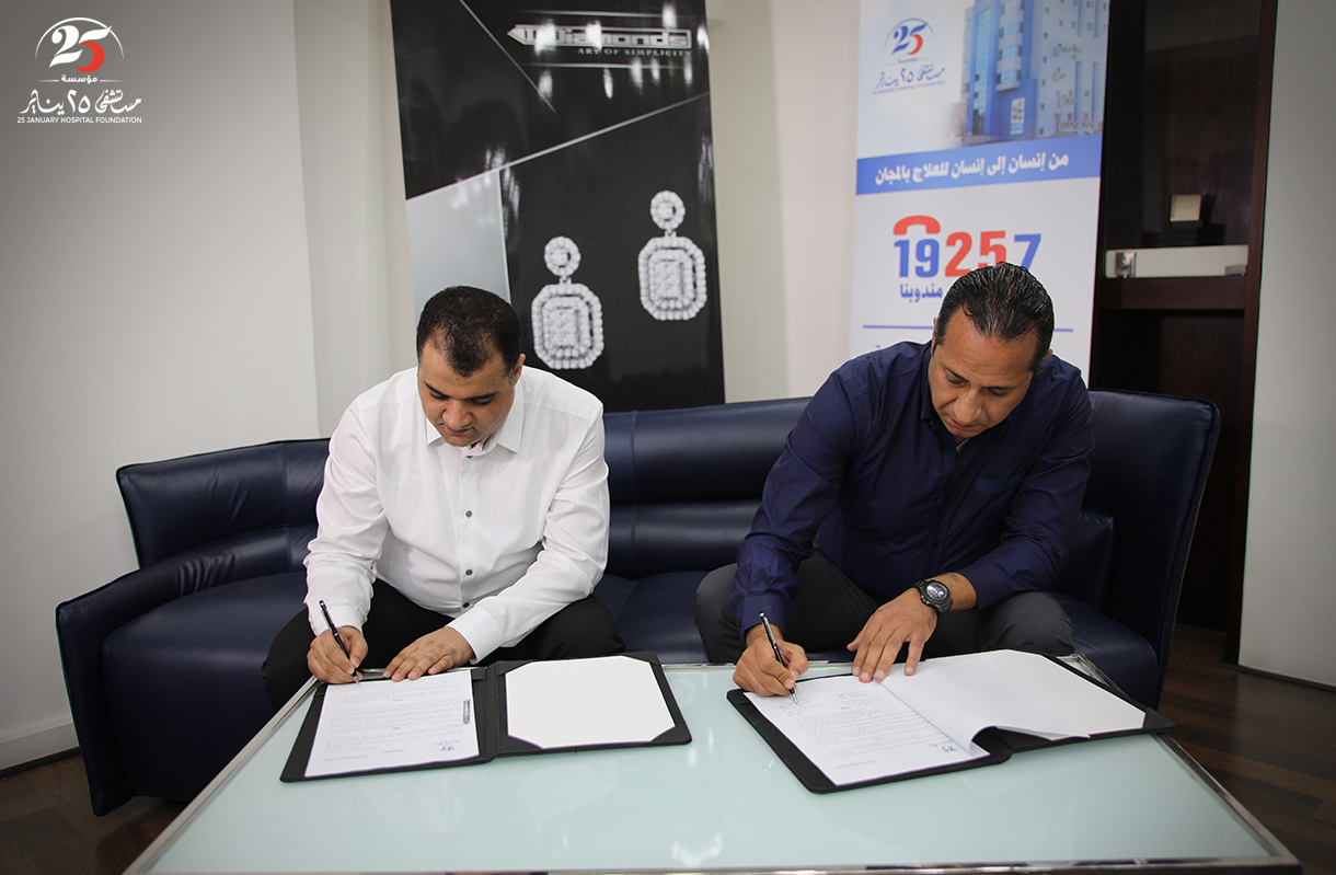 توقيع برتوكول تعاون بين مؤسسة مستشفى 25 يناير وشركة دي دايموندز للمشغولات الذهبية لدعم المستشفى واستكمال الأجهزة الطبية وتخصيص نسبة من أرباح الشركة لمصاريف التشغيل وعلاج أهالينا بالمجان.